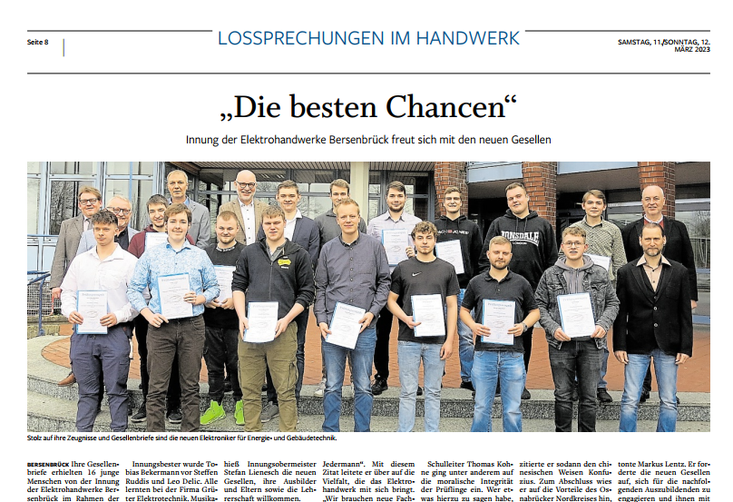✓  hervorragender Ruf: wir stellten in den letzten 7 Jahren gleich 4x den Innungsbesten Auszubildenden im Bereich der Energie- & Gebäudetechnik